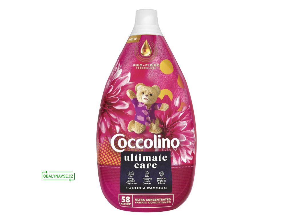 Coccolino Pro-Fiber Ultimate Care Fuchsia Passion je ultra koncentrovaná aviváž s dlouhotrvající vůní. Kombinace vůní červeného ovoce, sladkých květů jasmínu a vanilkových tónů nádherně provoní vaše prádlo. Prádlo je navíc nadýchané, měkké, rychleji schne a snadněji se žehlí. Aviváž přispívá k zachování kvality látky – pomáhá chránit vlákna, udržovat tvar prádla a pomáhá uzamknout barvy. ultra koncentrovaná aviváž dlouhotrvající vůně pomáhá udržovat kvalitu prádla pomáhá chránit vlákna pomáhá udržovat tvar pomáhá uzamknout barvy prádlo rychleji schne, je měkké a nadýchané jednoduché žehlení vůně červeného ovoce, sladkých květů, jasmínu a vanilkových tónů 58 praní